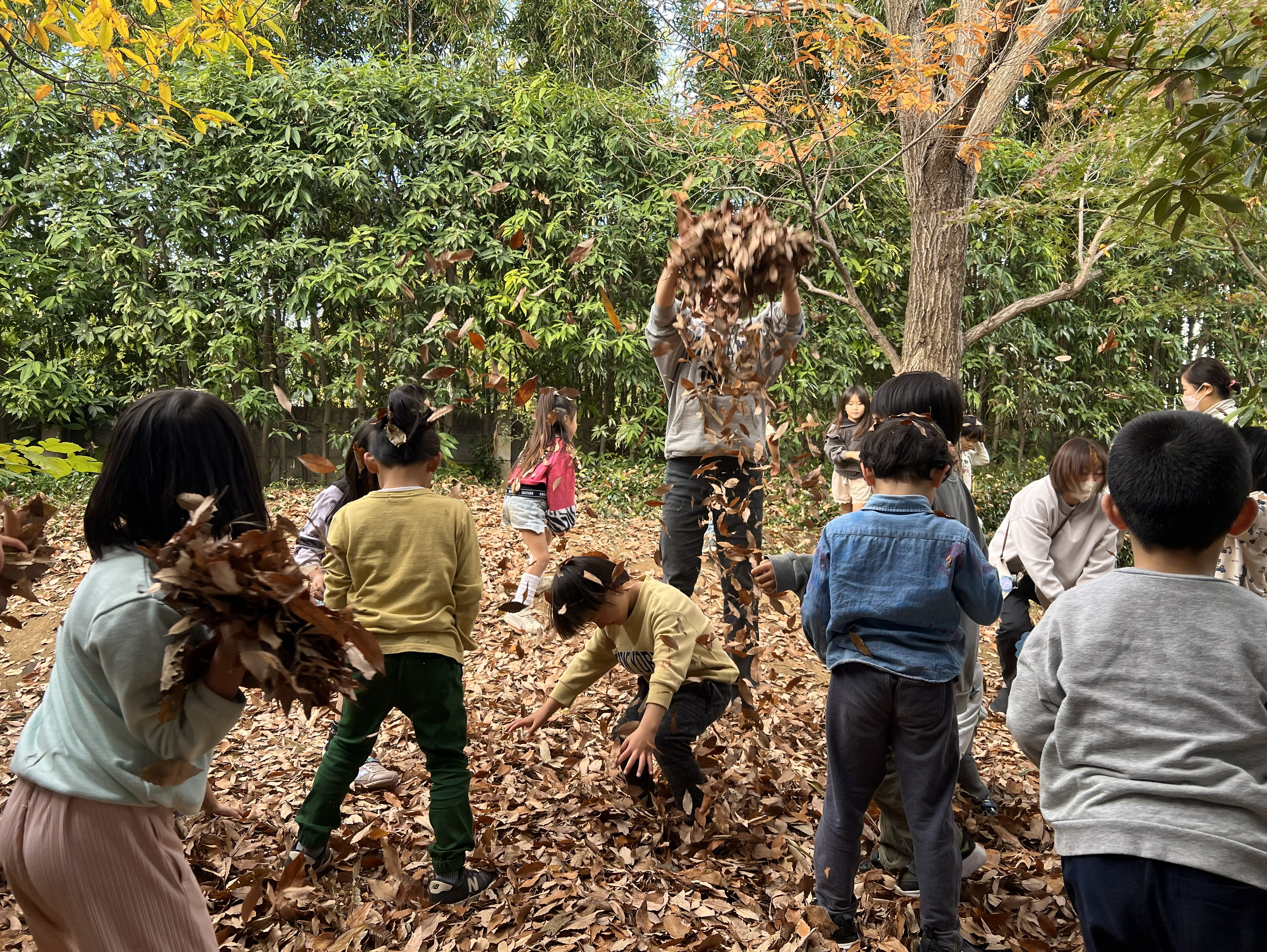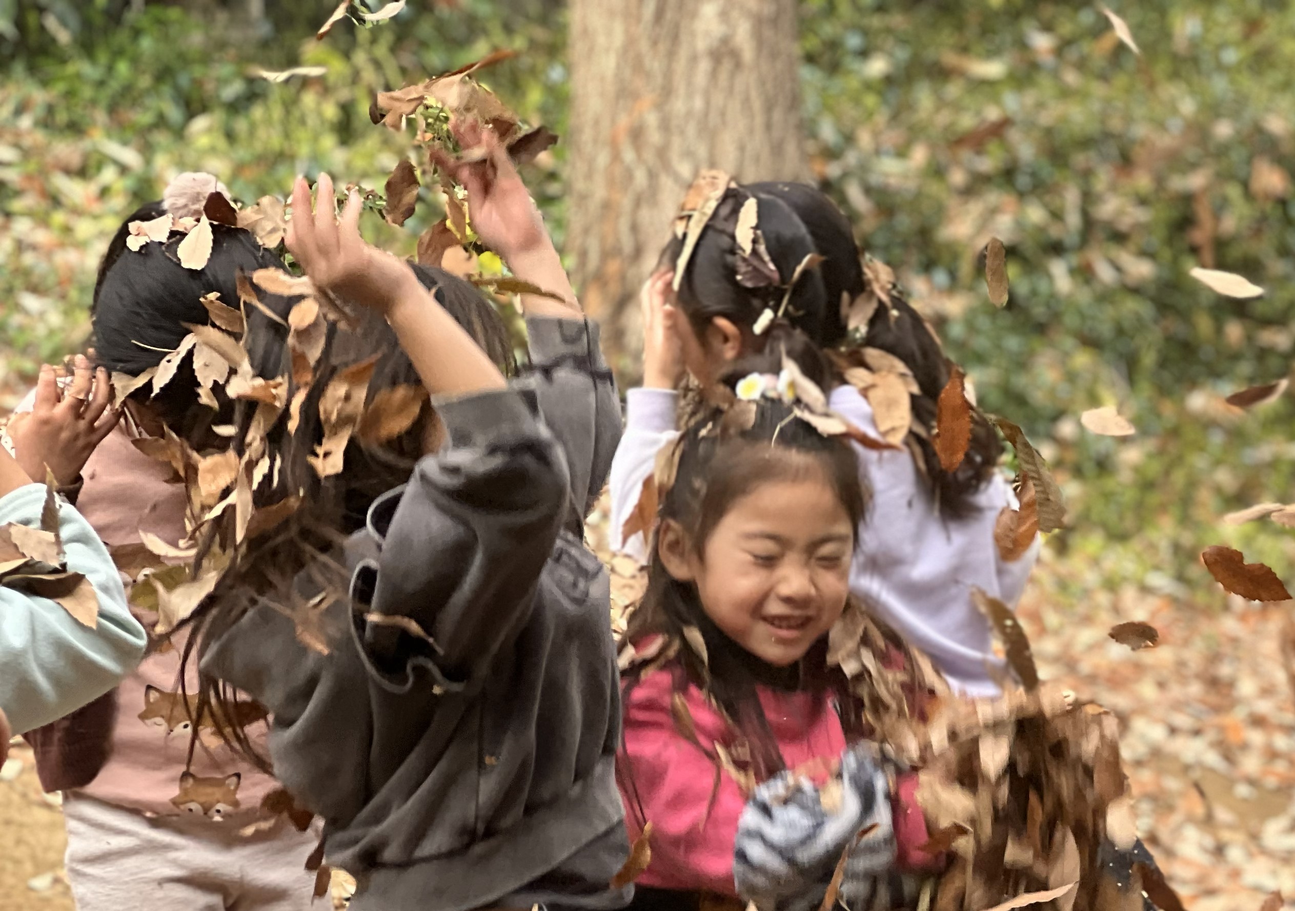 落ち葉を上に放り投げるだけで遊びになる