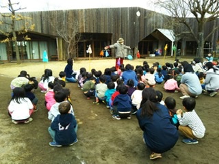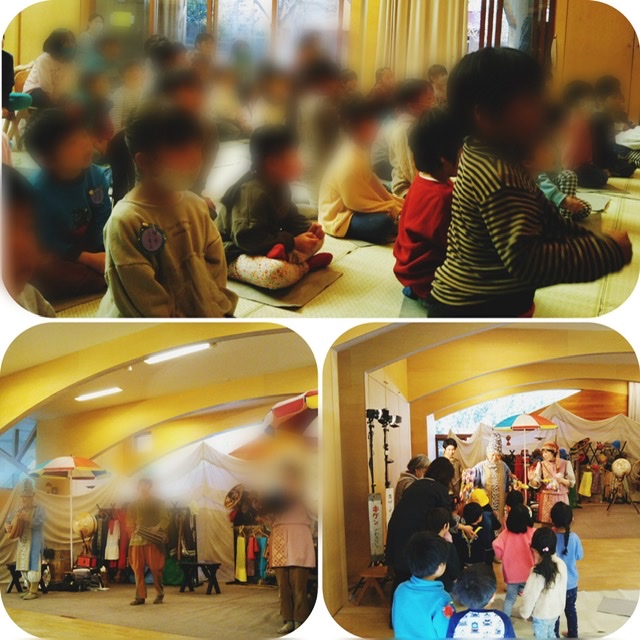 | 今日は待ちに待った「劇団風の子」の公演の日でした。 朝登園すると、普段おられない方と何やら面白そうな物が置いてあります。 いざ「風の子バザール」の公演が始まると… 素敵な歌声、楽器の生演奏、あちらこちらの国の衣装を身に纏いながらの演劇に引き込まれ引き込まれ。子どもたちは時に笑い、時に「きゃー」と怖がり楽しみました。 劇団員のお一人の方が引退されるとのことで、感謝の気持ちを込めてお花と手作りのプレゼントをお渡ししました。 「劇団風の子」さん来てくださりありがとうございました! ![]() |
