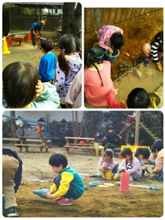 | ◎今日は園庭にいつもは聞こえないチェーンソーの音が響いていました。 薪ストーブに使う薪を切るために年中組のお父さんが手伝いに来てくださったのです。 大きな音に耳を塞いだりしつつも目が離せない…夢中で見入っている人もいました。 「うちのパパもさ〜」など友達のパパを見ながら自分のパパの話をする人も。 お陰さまでたくさんの薪が出来ました。 ◎幼稚園の庭に新 しい土が入りました。 さっそく気づいた子どもたちがその土を掘り起こし水を混ぜ、だんごにしたりチョコレート作りやお餅つきが始まりました。 土と水があれば、じゅうぶんに遊べるひかりの子! ![]() |